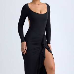 Modal Scoop-Neck Midaxi Dress in Chocolate Brown