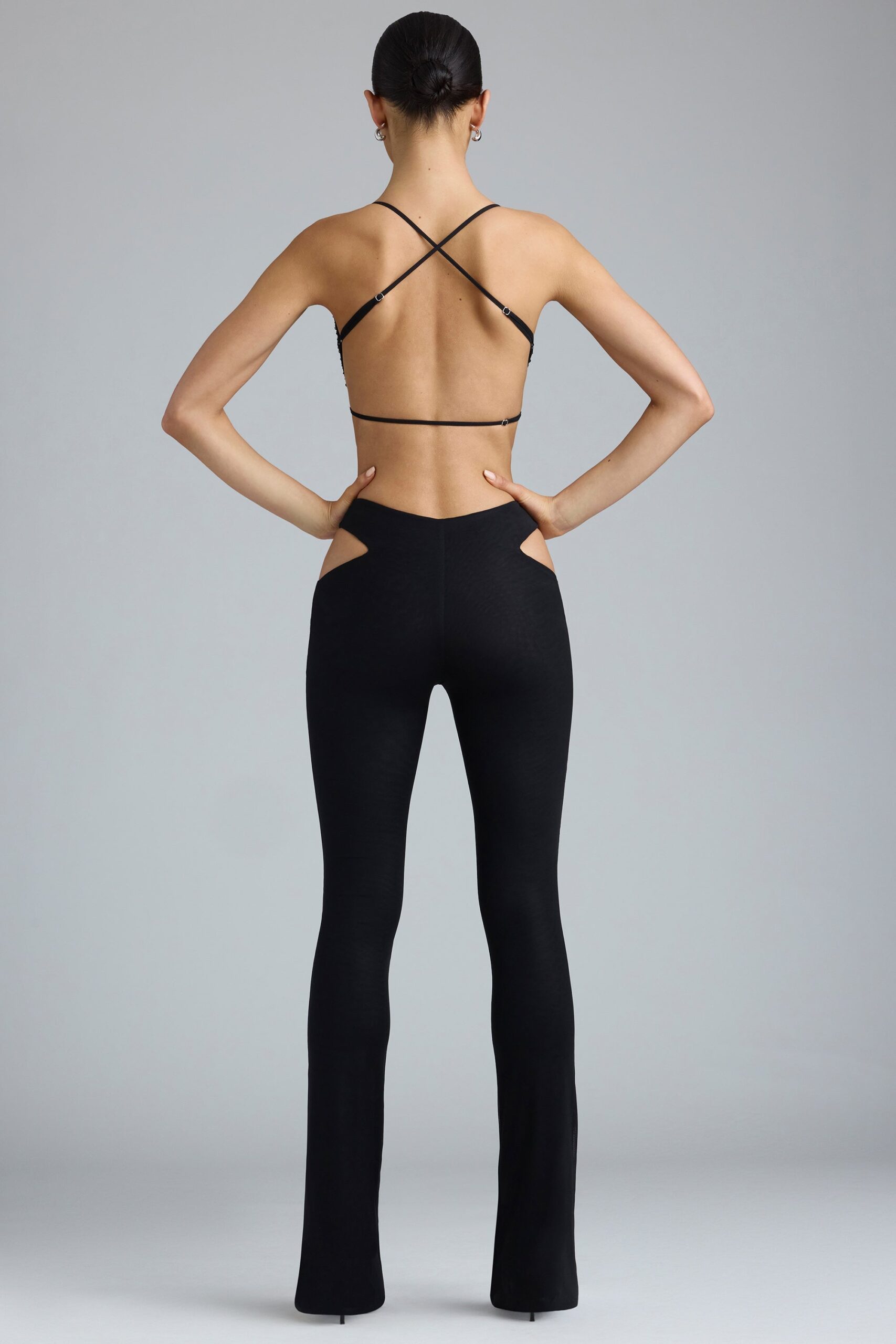 Made for festival season and beyond. the Harper trousers are inspired by playful noughties styling. They’re crafted to a flared silhouette from our 20D stretch-mesh fabric with a glossy metallic coating for a fluid. second-skin look. The low-rise fit is emphasized with V-shaped. figure-flattering hip cut-outs at each side.