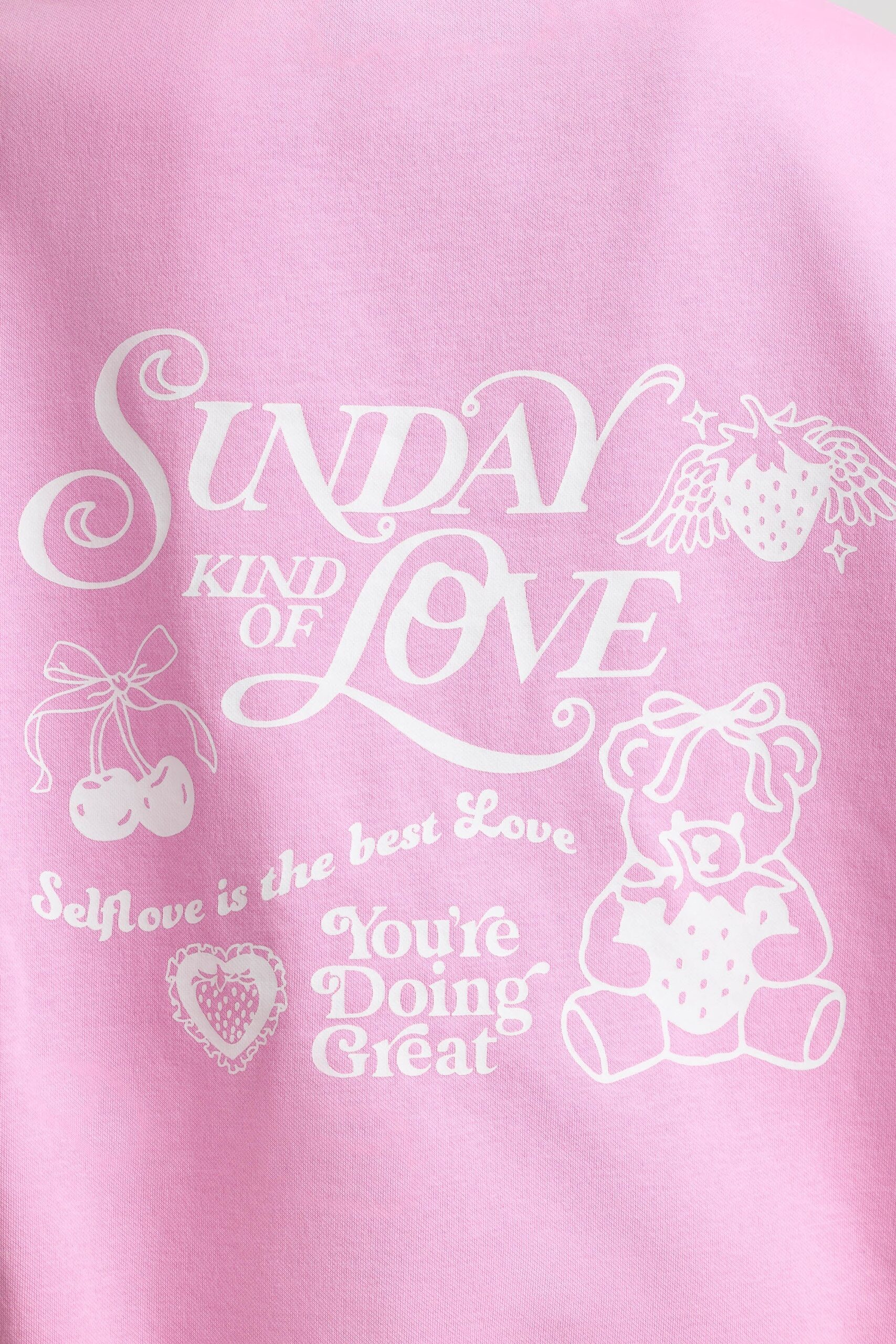 Experience love at first sight. A playful reimagining of a casualwear classic. our washed Sunday Love hoodie is made from medium-weight cotton jersey with a soft brushed lining. It’s cut to an oversized fit with drop shoulders for a laid-back look. The graphic artwork at the back. chest. and sleeve nod to the season’s romantic vibe.