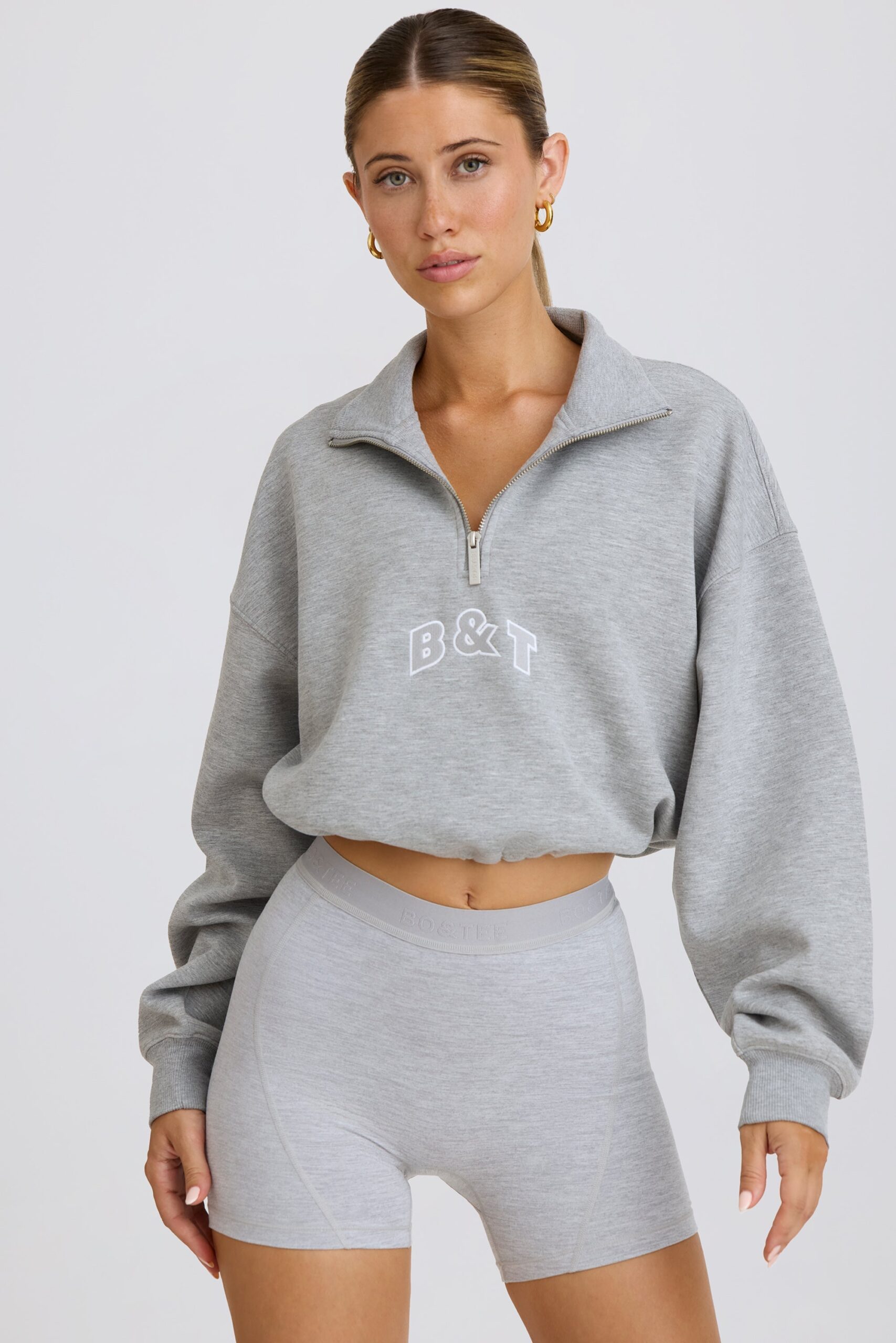 Quarter-Zip Cropped Sweatshirt in Grey Marl