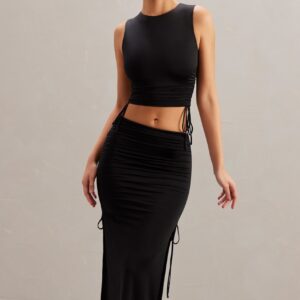 Mid Rise Metallic Jersey Gown Skirt in Copper Bronze