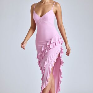 Panelled Ruffle Evening Gown in Baby Pink